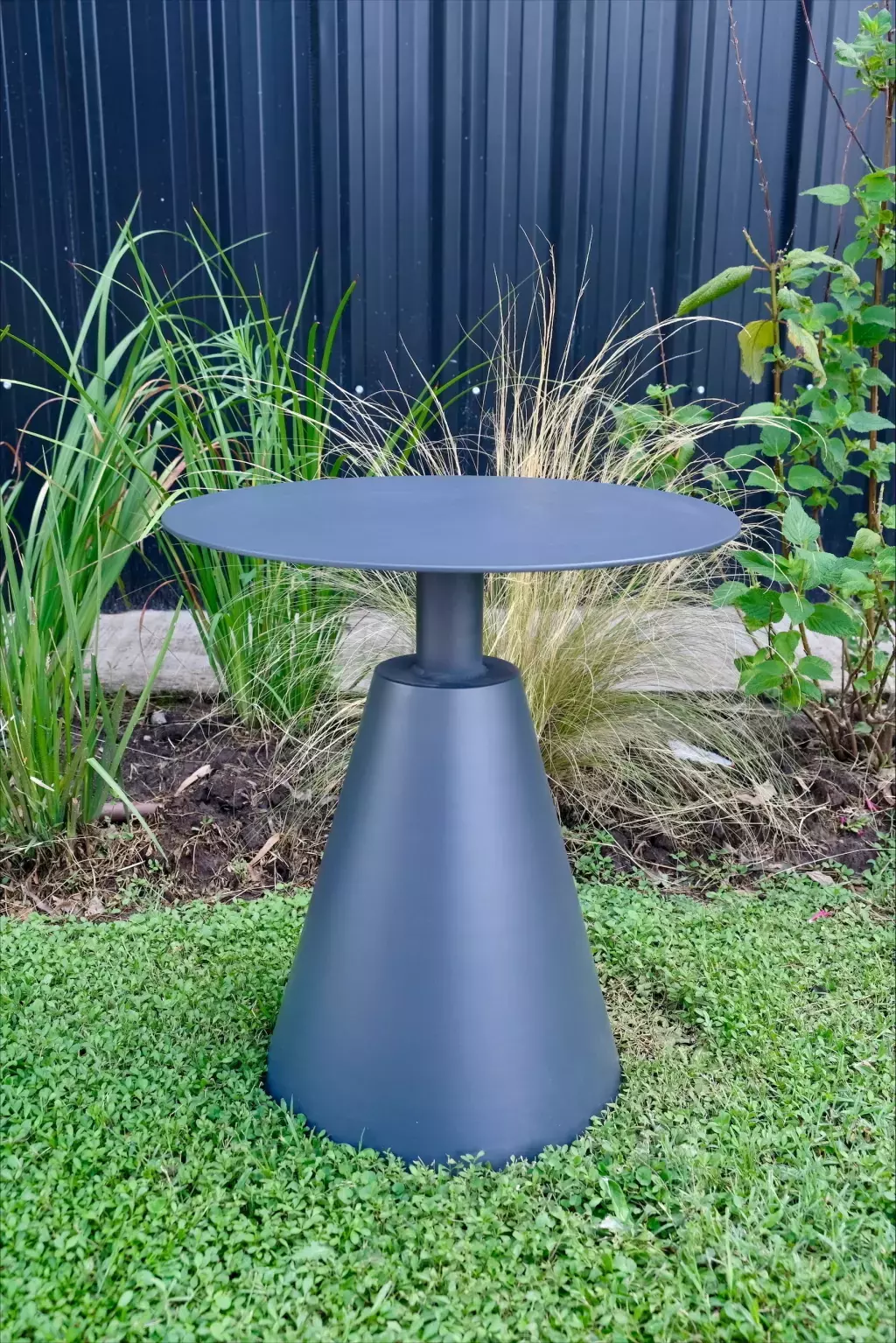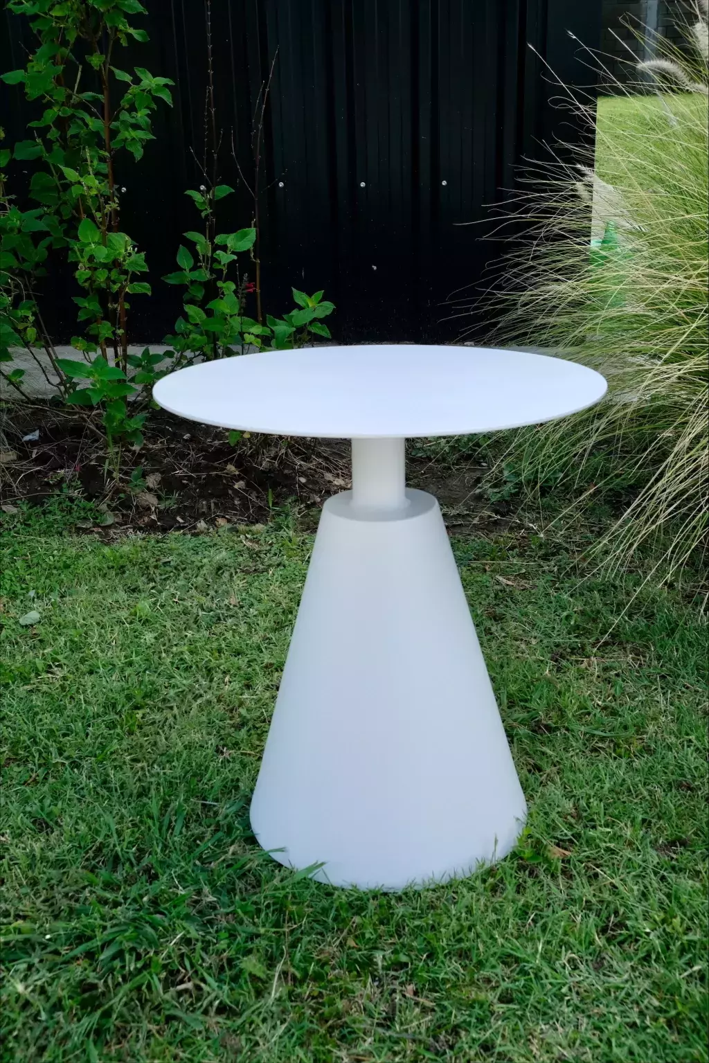 Mesa auxiliar Haven de exterior. De estructura de aluminio. Disponible en tres variantes de color: blanca, verde y gris oscuro.