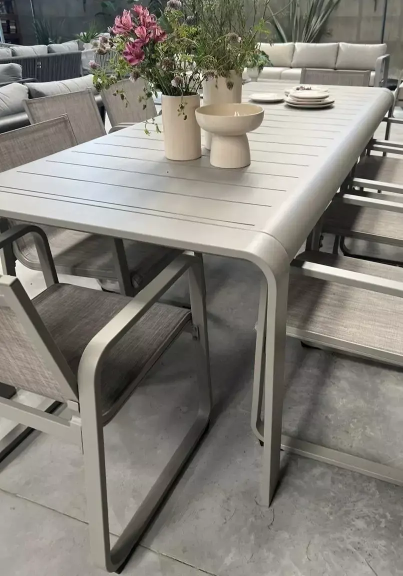 Estructura de aluminio con recubrimiento en polvo, con textilene en asiento y respaldo,