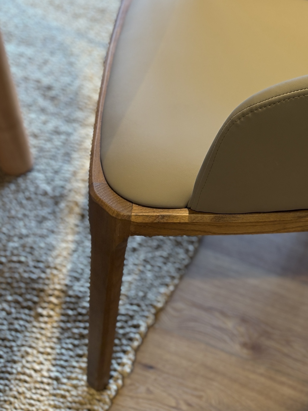 Silloncito Zur con estructa de madera oscura y tapizada en ecocuero gris.